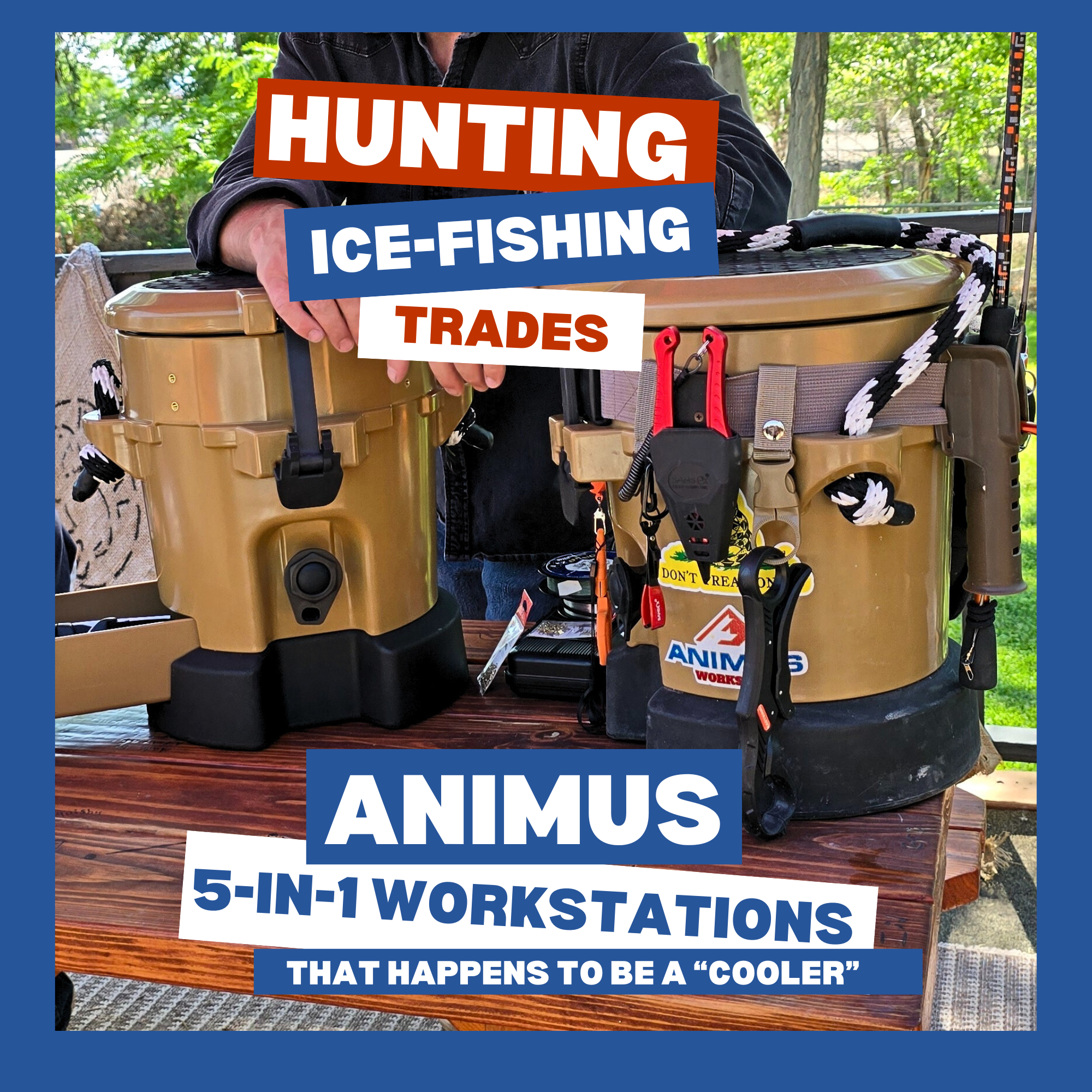 Animus Workstations-Heavy Duty 5 in 1 Cooler with Built-in Seat, Dry Drawer- Thick Insulated Walls-Lunch, Water & Gear Storage Ideal for Hunting, Fisherman & Professional Tradesman