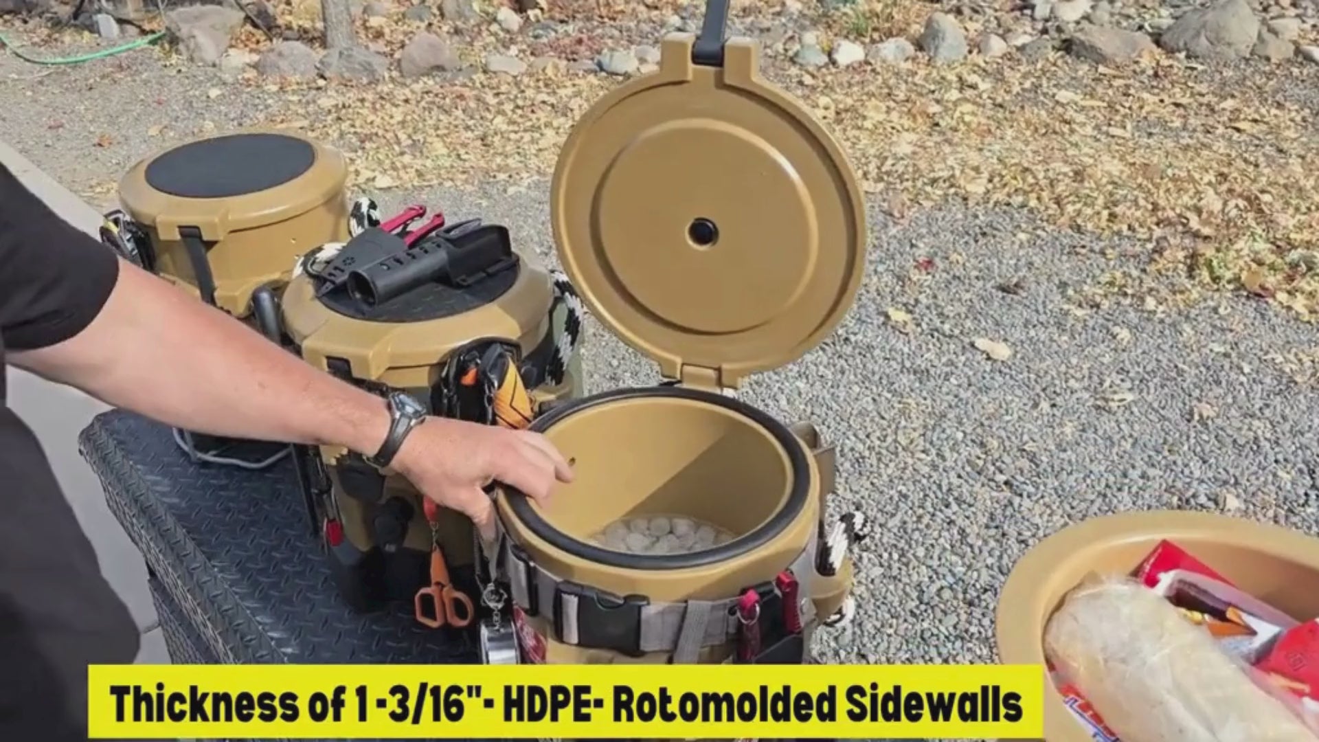 Roto molded for harsh conditions & UV protected with PermaFrost foam injection to keep contents cool for those long work days!